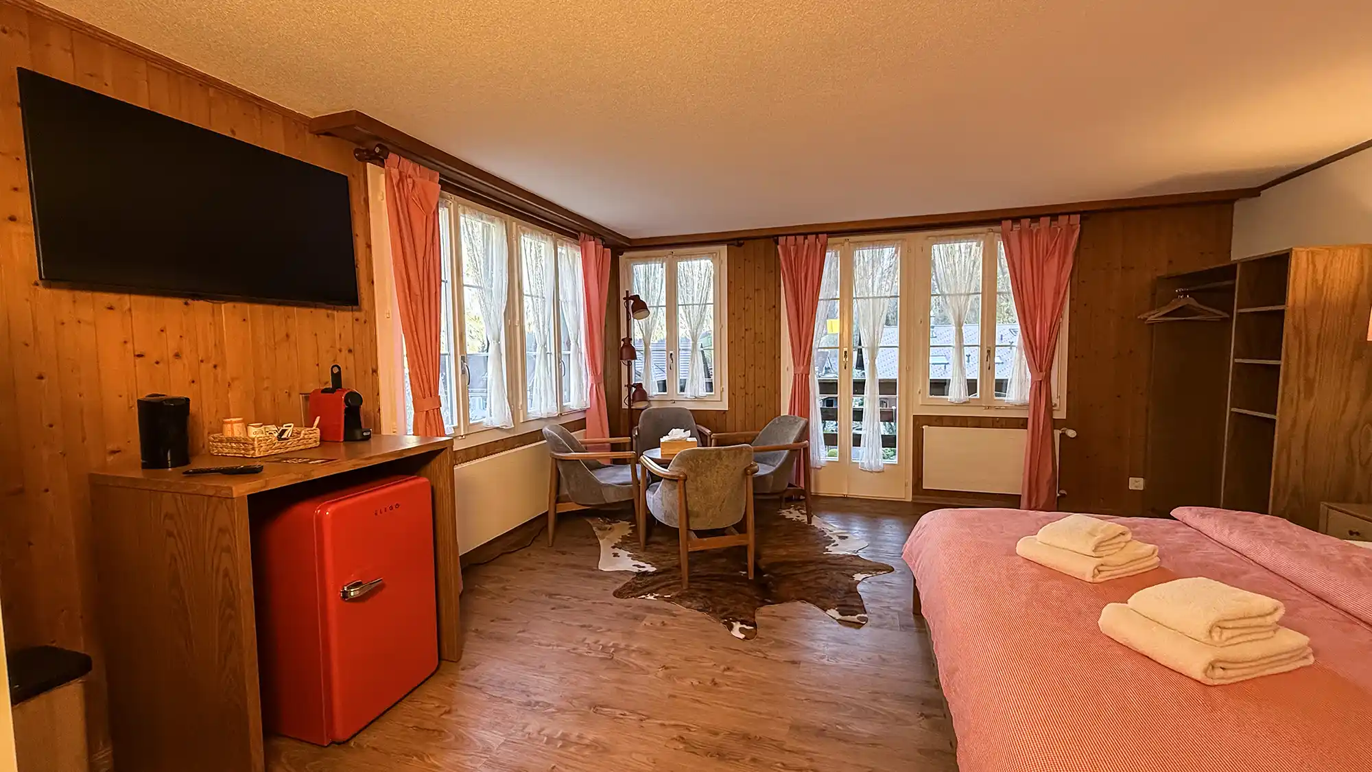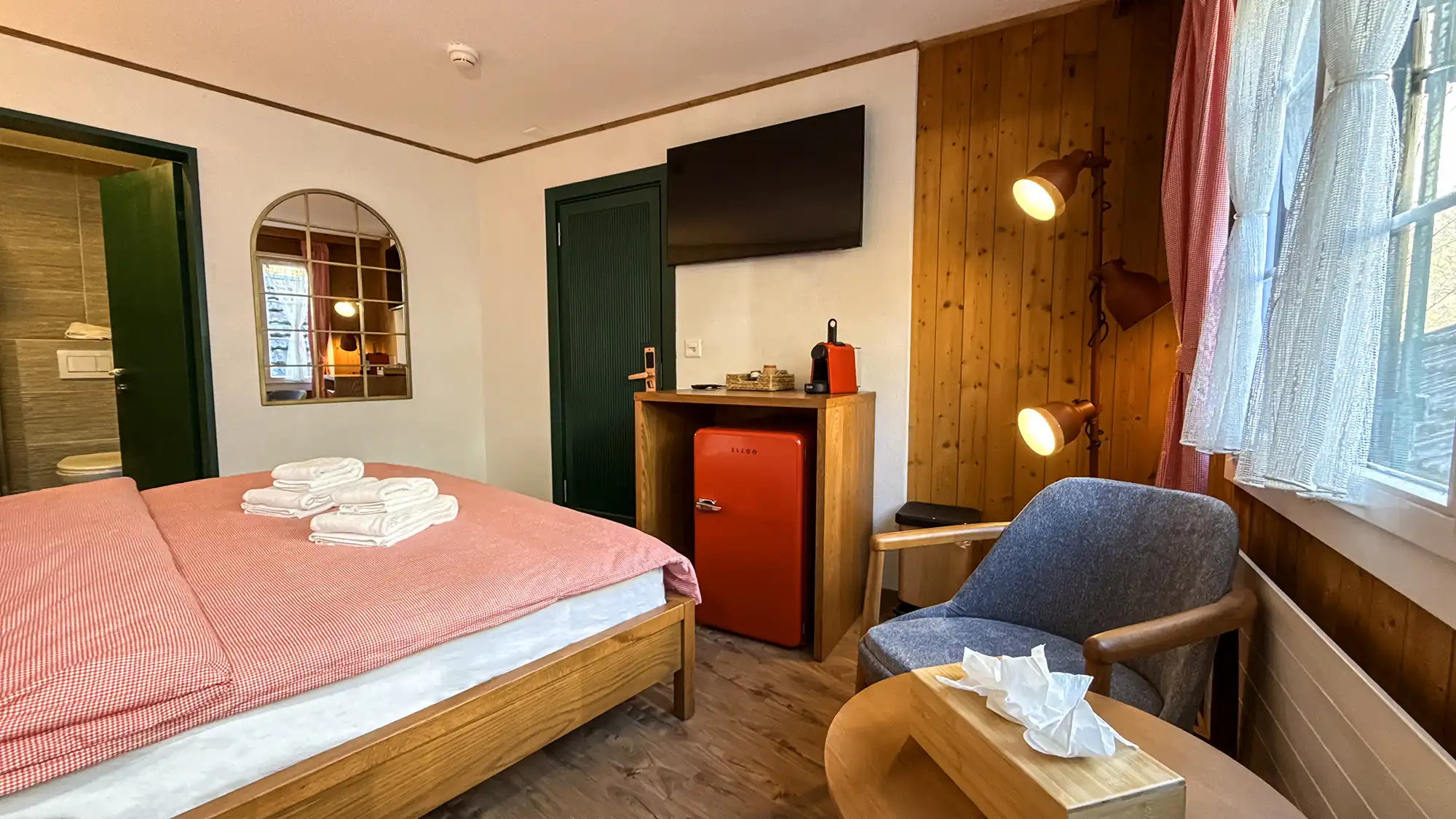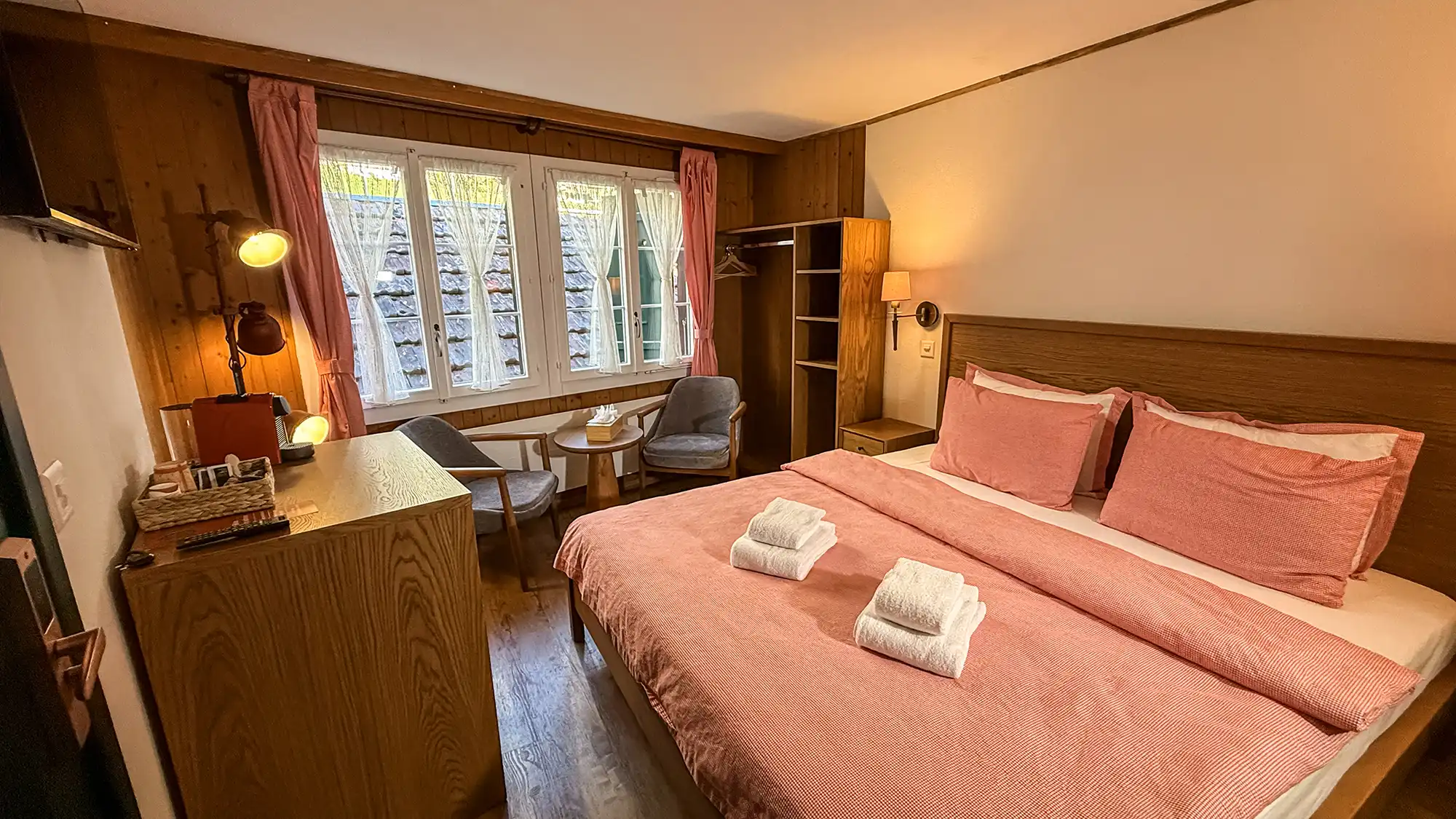 We loved the beautiful location of this hotel. It was close to the train station and a short walk to the waterfall and river. Morning and night the neighbouring farmers would move their small herd of cattle down beside the hotel and through the streets - fantastic!