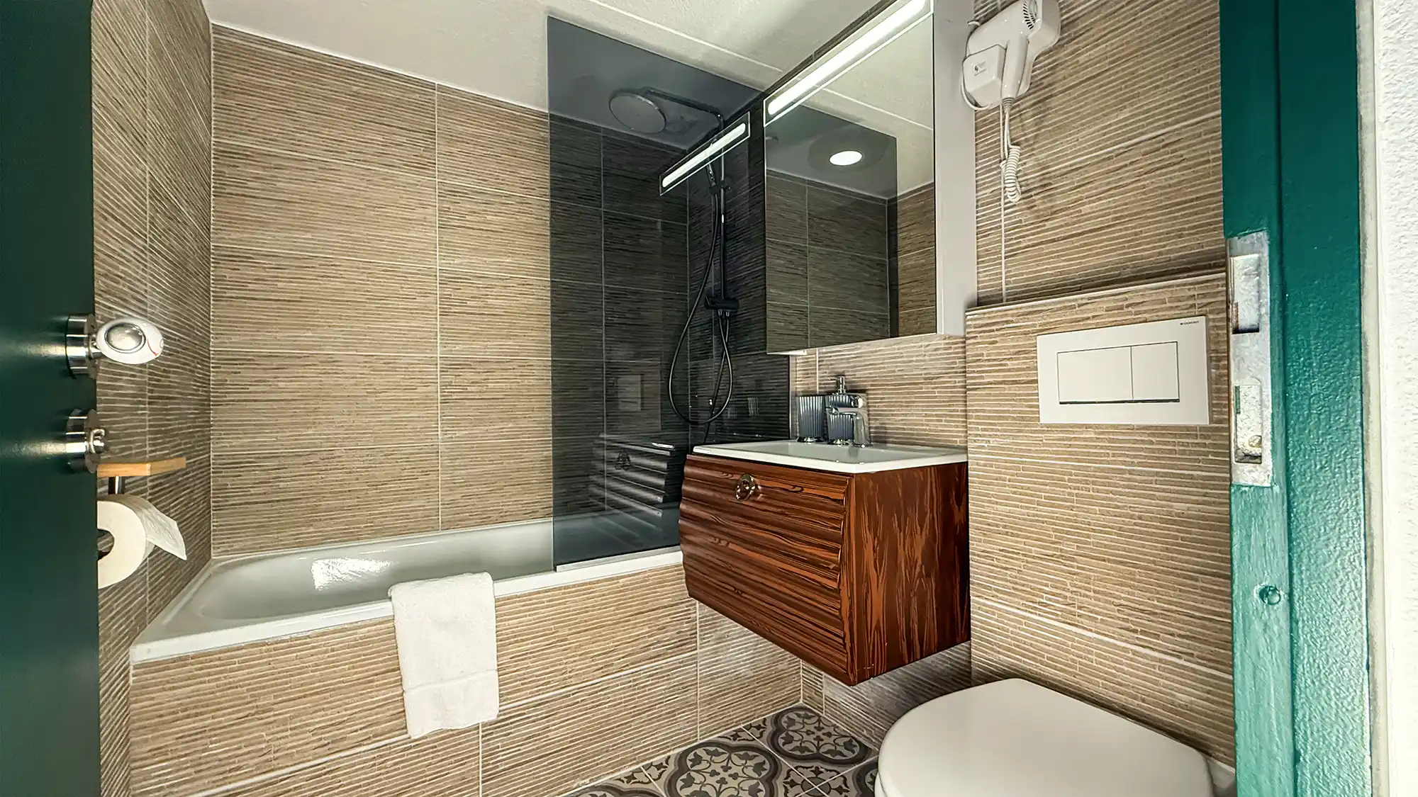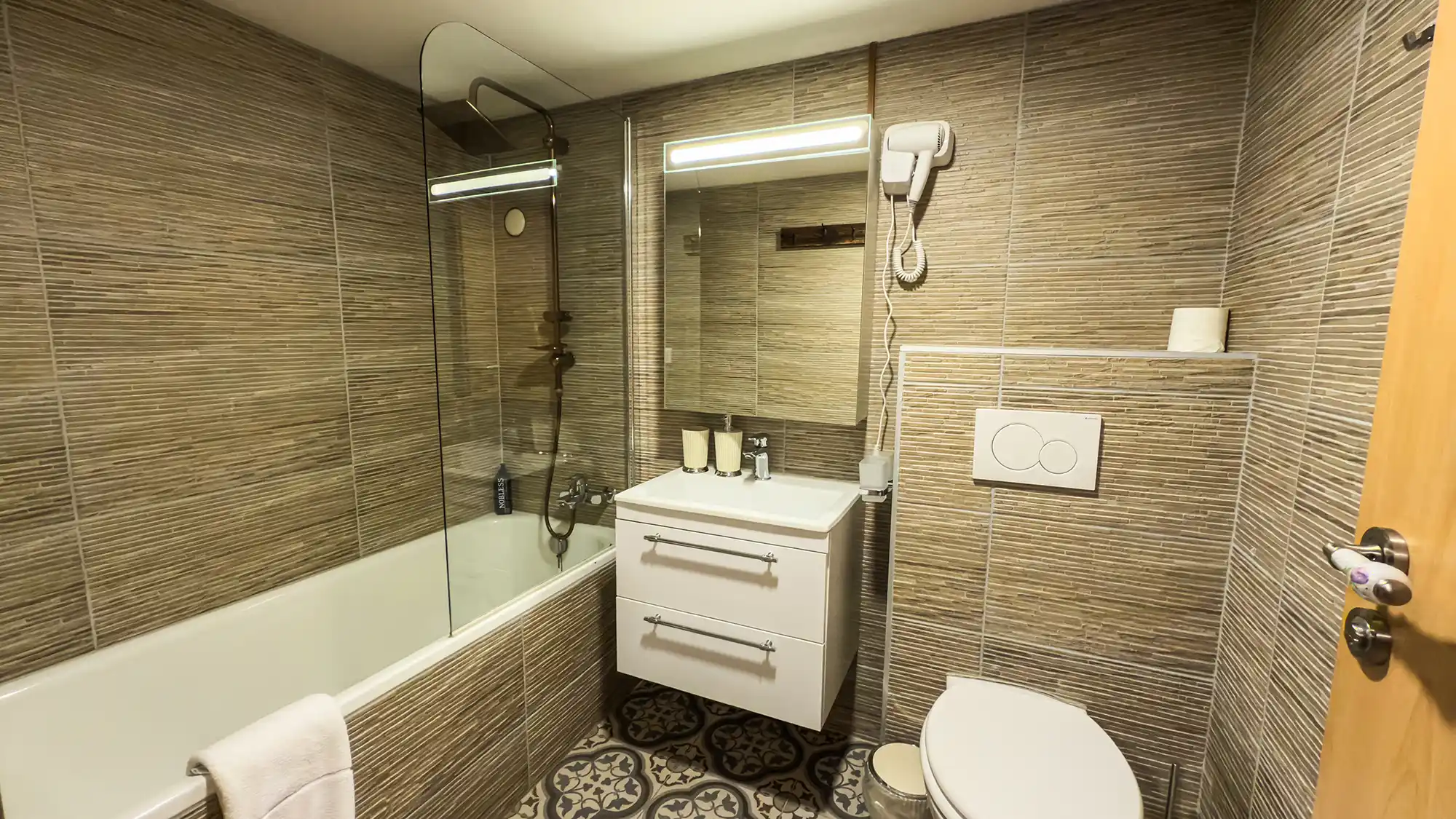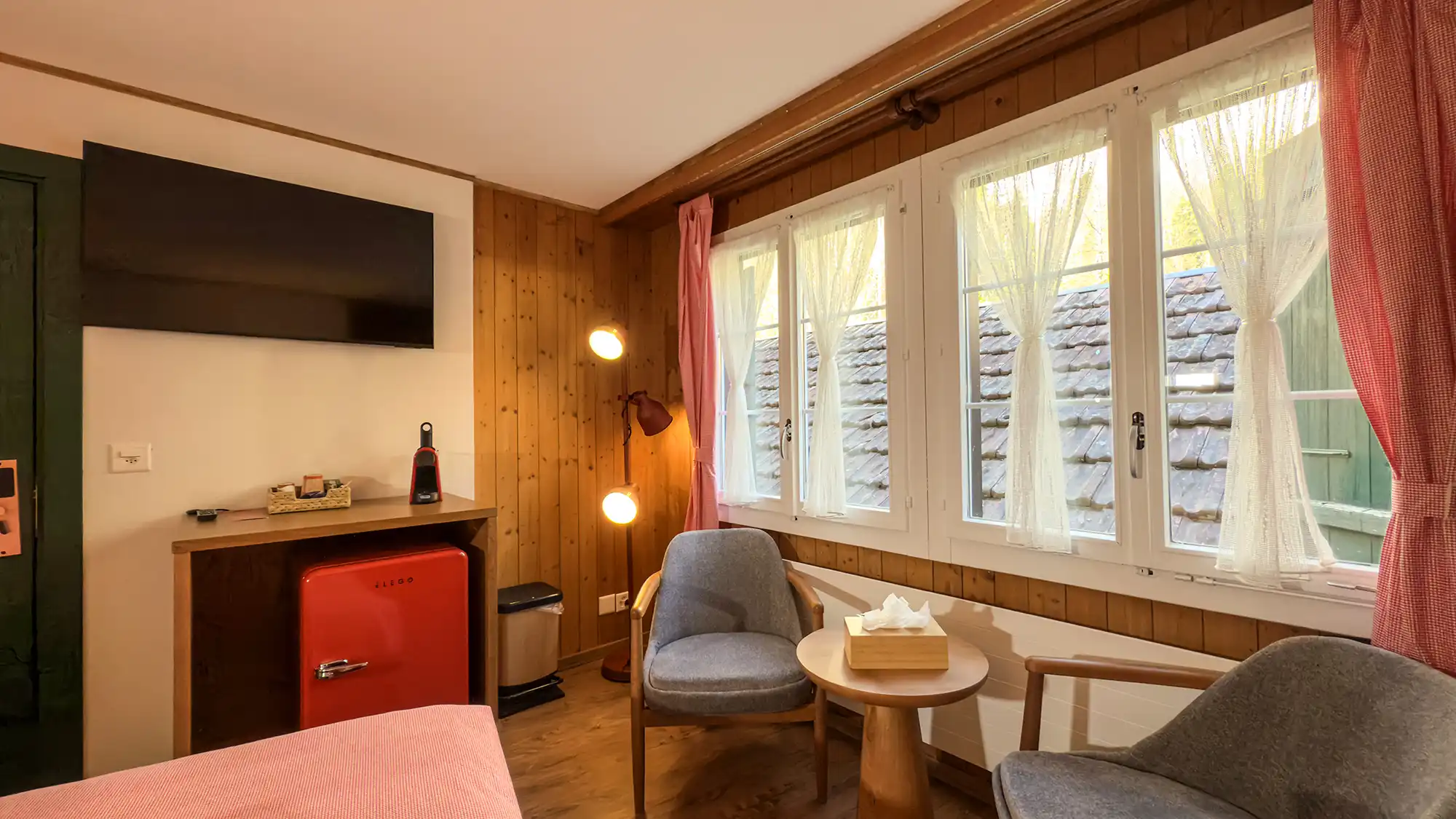 We loved the beautiful location of this hotel. It was close to the train station and a short walk to the waterfall and river. Morning and night the neighbouring farmers would move their small herd of cattle down beside the hotel and through the streets - fantastic!